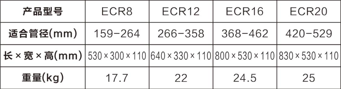 手動(dòng)旋轉(zhuǎn)式金屬切管機(jī)ECR系列產(chǎn)品是易沃克E-WORK生產(chǎn)的一系列可切割大管徑碳鋼、不銹鋼、鑄鐵、球墨鑄鐵管的冷切割工具。合理的導(dǎo)向架設(shè)計(jì),使切割口平整、筆直,效率更高;采用純手動(dòng)操作,無(wú)火花,確保管道施工過(guò)程的AN全;四個(gè)刀片同時(shí)切割,進(jìn)刀更快,更省力;切割無(wú)碎屑,確保管道內(nèi)部潔凈,防止閥門(mén)堵塞;操作簡(jiǎn)單,無(wú)需其他動(dòng)力源,本系列手動(dòng)旋轉(zhuǎn)式金屬切管機(jī)被廣泛應(yīng)用于空間狹小的溝槽、水中、禁止噪音區(qū)、易燃易爆等環(huán)境中。手動(dòng)旋轉(zhuǎn)式金屬切管機(jī)有多種型號(hào),分別為8寸旋轉(zhuǎn)式切管機(jī)ECR8、12寸旋轉(zhuǎn)式切管機(jī)ECR12、16寸旋轉(zhuǎn)式切管機(jī)ECR16、20寸旋轉(zhuǎn)式切管機(jī)ECR20。