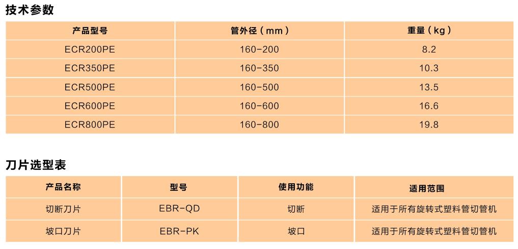 自動(dòng)管子割刀常見的有爬管式管道切割坡口機(jī)和分瓣式切割坡口機(jī)。自動(dòng)管子割刀型號尺寸表如下: