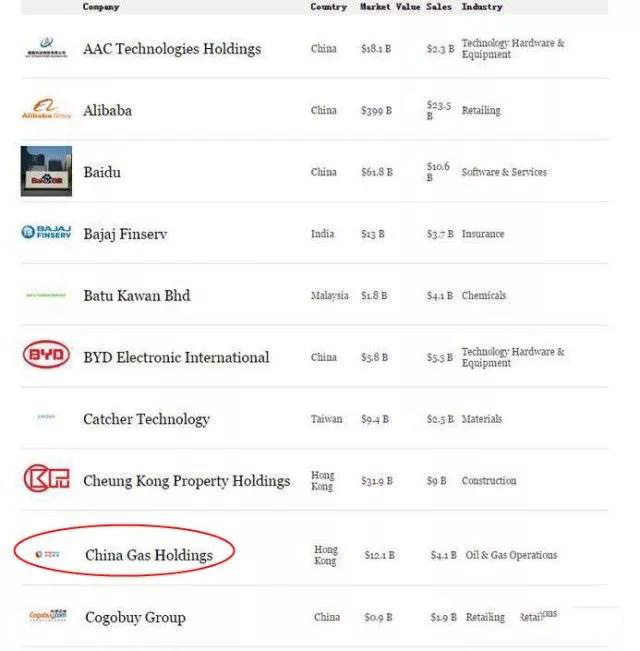 2017年8月24日,《福布斯》 新發(fā)布了2017年亞洲 佳50家上市公司榜單,中國(guó)燃?xì)鈶{借出色業(yè)績(jī)表現(xiàn)及公司經(jīng)營(yíng)管理等綜合情況, 三次榮登該榜單,名列 9位。