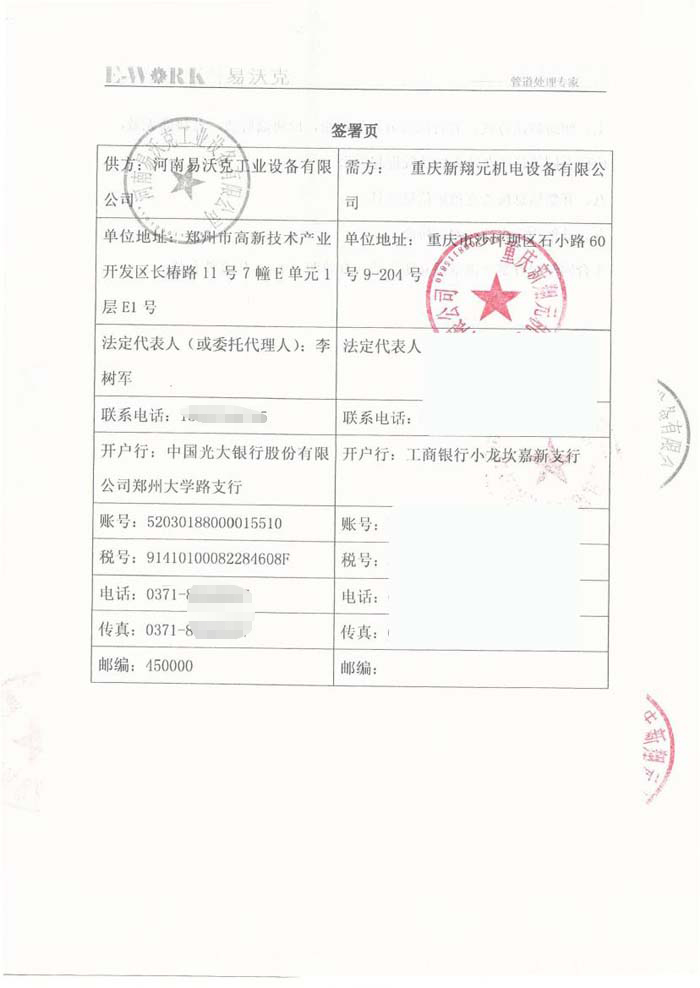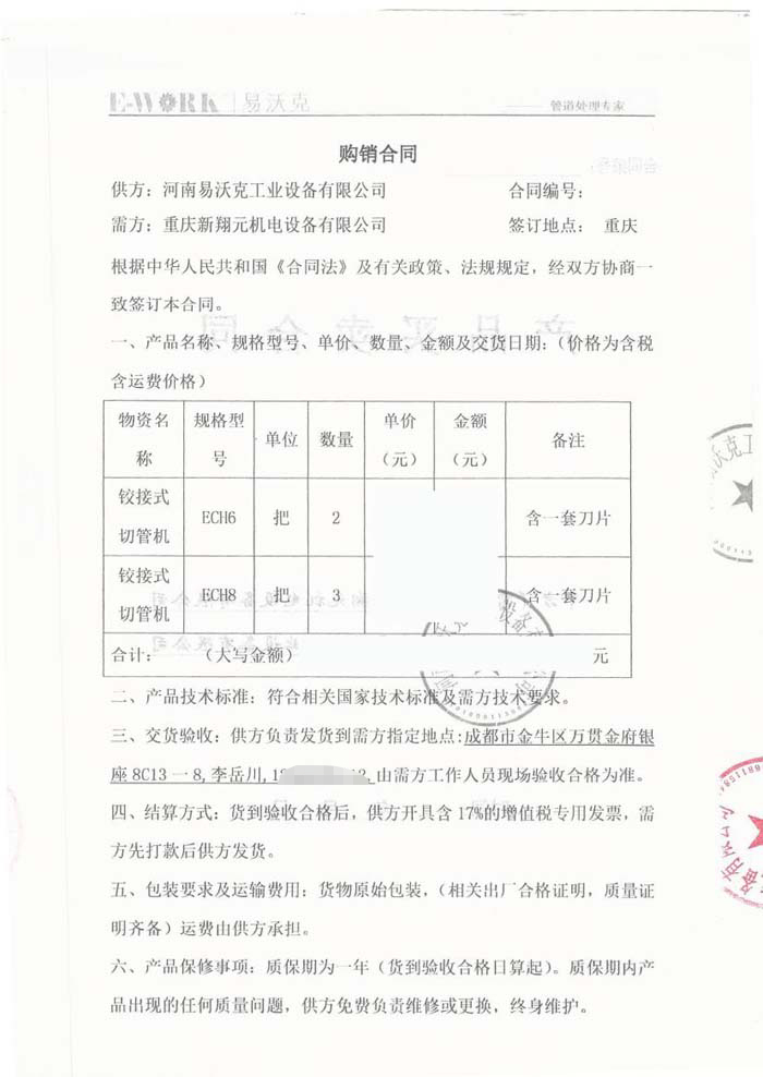 2017年重慶新翔元機(jī)電設(shè)備有限公司合作業(yè)績