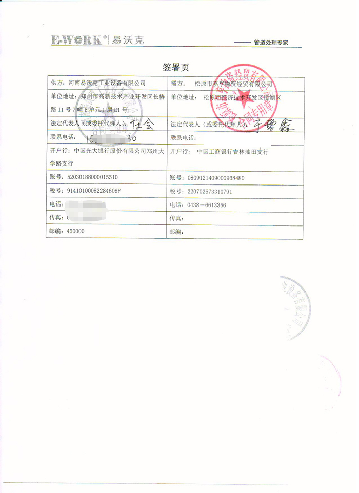 2016年松原市嘉亨物資經(jīng)貿(mào)有限公司合作業(yè)績