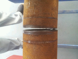 其次進入試用的是我司另一款金屬管切割工具:鉸接式切管機ECH4,本系列產(chǎn)品只需更換刀片便可切割碳鋼、不銹鋼、鑄鐵、球墨鑄鐵等不同材質(zhì)金屬管件,本次操作切割人員為上饒大通燃氣公司搶修隊伍的一名技術(shù)員工,簡單的講解了一下操作規(guī)范,便在100mm鍍鋅管件上開始切割, 一次使用時間為2分46秒完成切割,我們可以看到在管道切割過程中不產(chǎn)生任何的碎屑和火花,切口特別的平整。